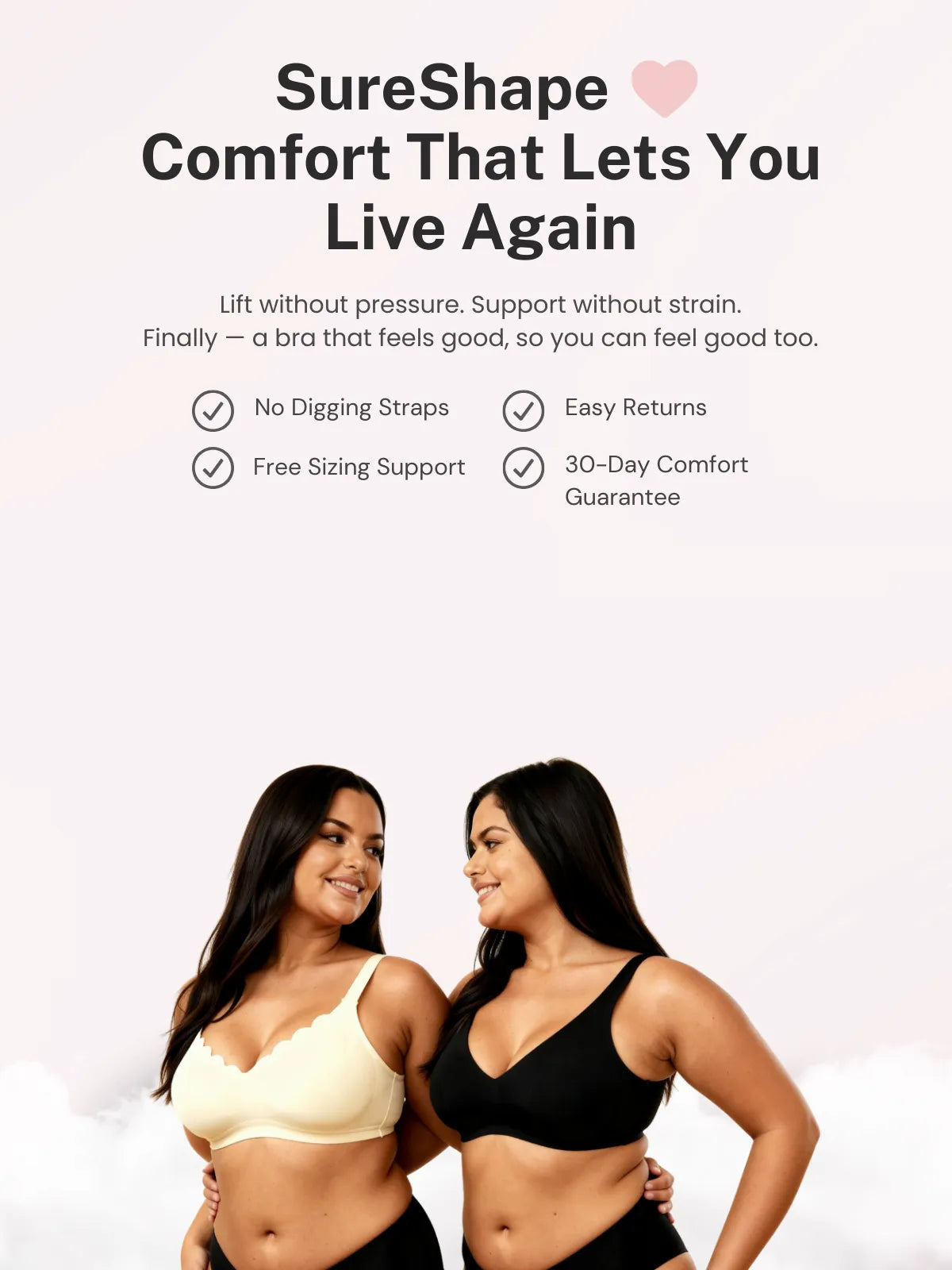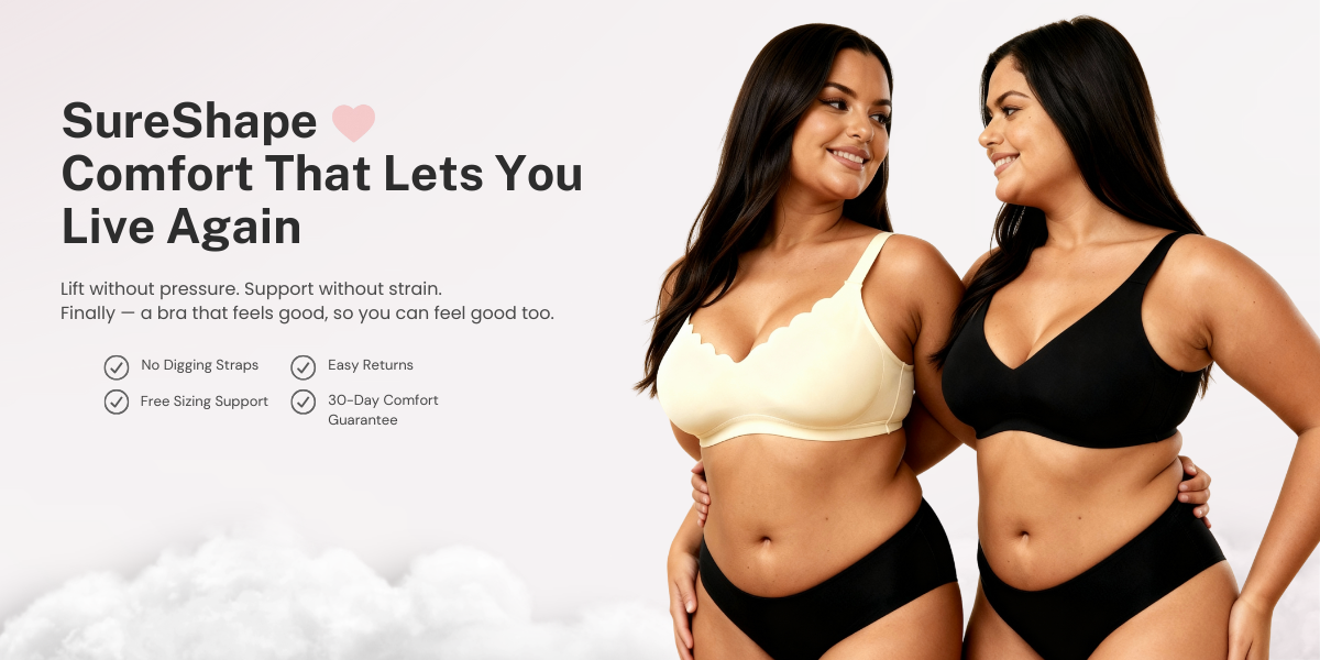Every piece is made to feel like a second skin: soft, supportive, and wire-free. Designed by real women who were tired of discomfort, SureShape puts your comfort first in every stitch.