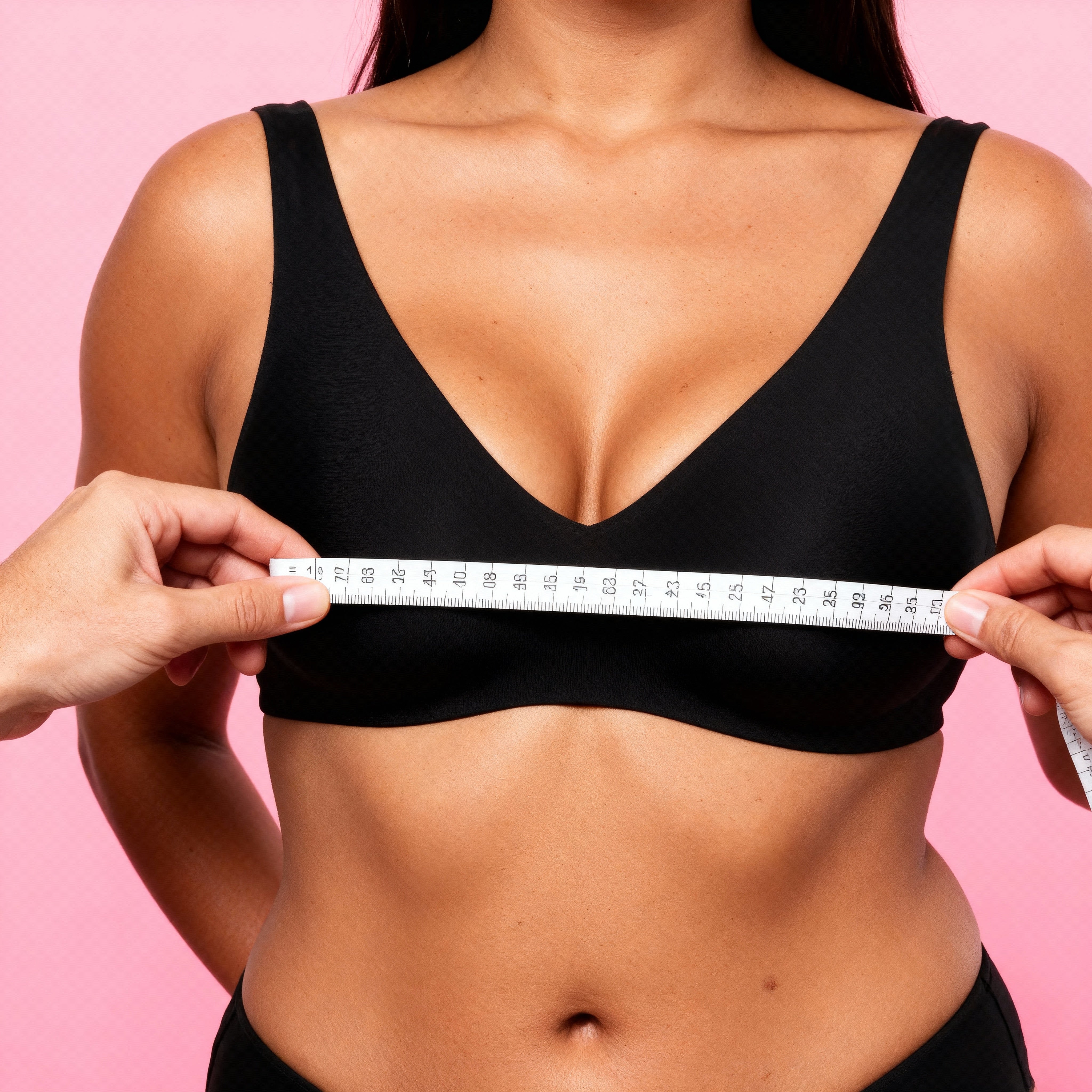 Wrap the measuring tape around your ribcage, right under your bust. Keep it level and straight across your back for accuracy.